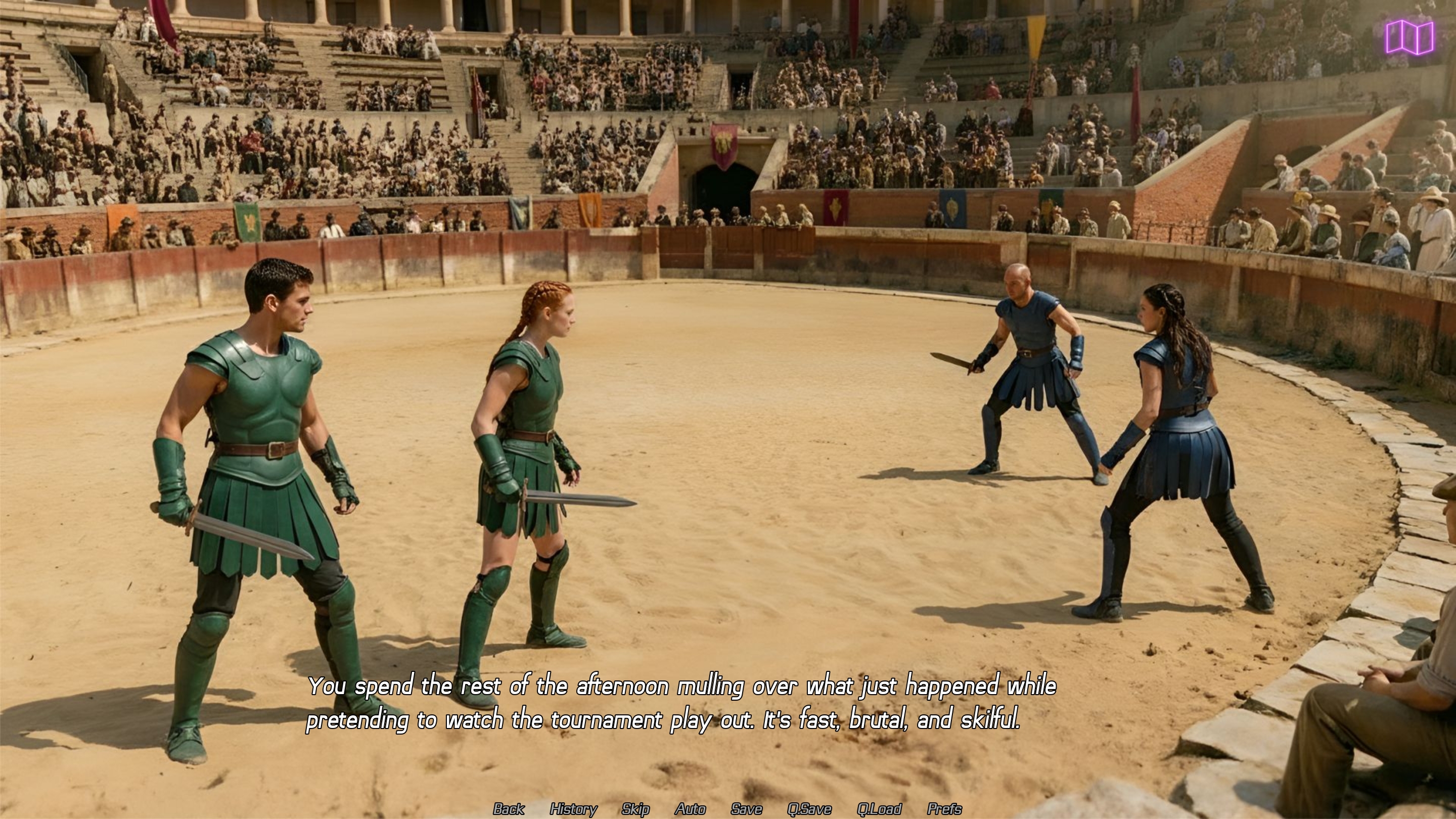 I've just finished adding in all the sprites, static images and animations for 0.4. I still have all the sound and music to do, I doubt I will make the Wednesday EA release date I was hoping for, but I might still be able to get it out for Thursday. I'm not sure, there are a lot of varied scenes which will require different ambient sounds as well as quite specific sound effects, so that's likely to take up a bit of time.